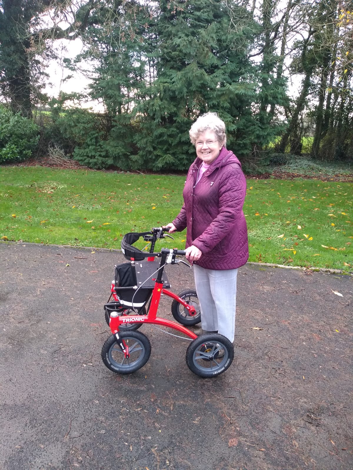 På grunn av min KOLS-sykdom, kneleddsoperasjoner og balanseproblemer på grunn av ryggmargsoperasjoner, kunne jeg knapt gå gjennom den store hagen vår, som ikke har asfalterte stier. Jeg klarte ikke komme overens med en vanlig rullator i det hele tatt…