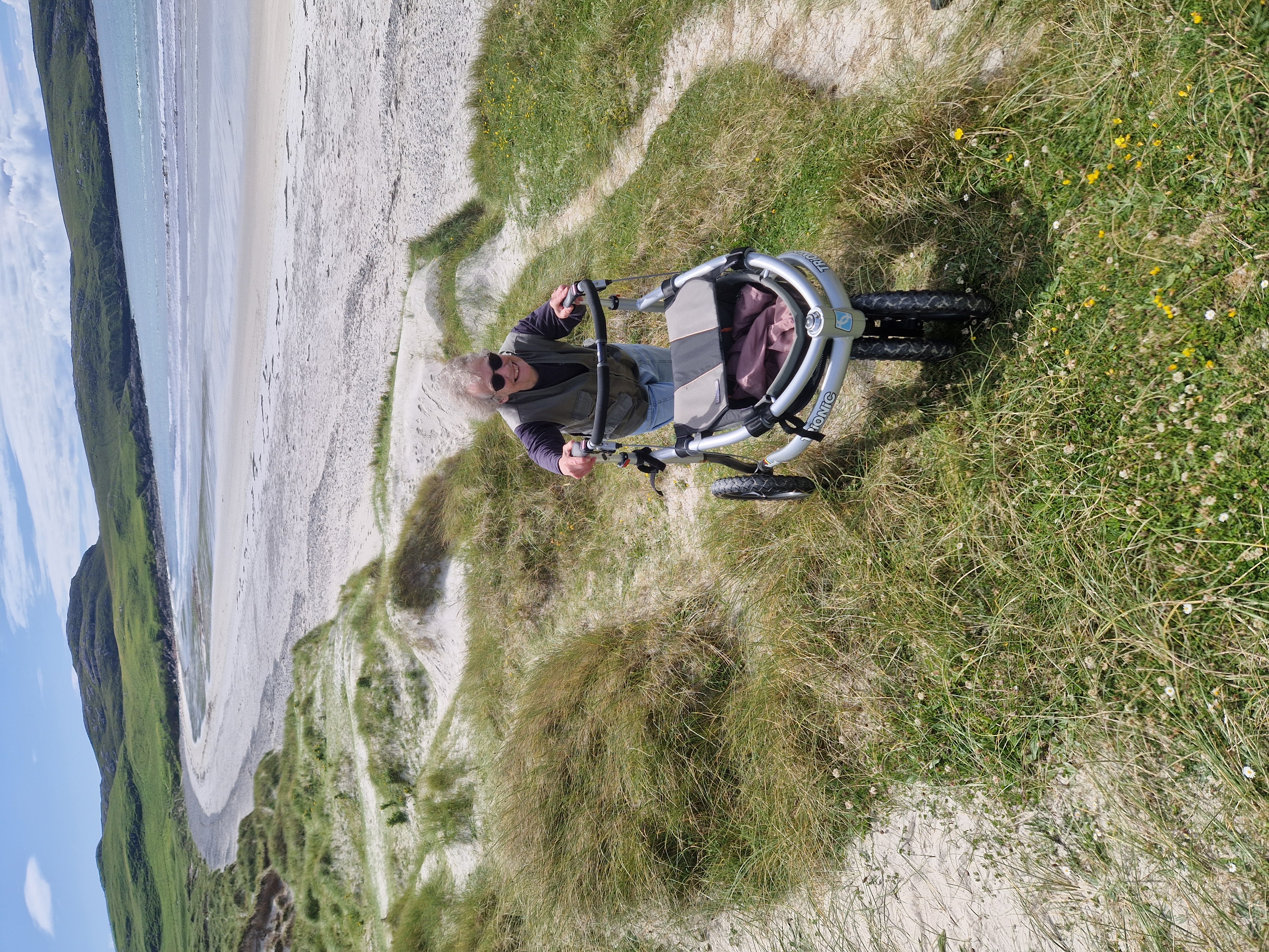 Min Trionic Trekker 12" kom i går og i løpet av 5 minutter var hjulene montert, vannflasken var i kurven og vi var ute på vår første tur på fortauet på over 10 år.... utrolig. Det var blomster, malte steiner som noen hadde lagt igjen slik at andre kunne finne, og mye hundeskit. I dag var jeg ute på stien tidlig for å utforske våtområdene i nærheten. Trionic'en fungerte utmerket. Den tørkede gjørma var skikkelig sporete noen steder men forhjulene hadde ingen problemer med å komme seg frem. Utrolig godt gjennomtenkt design. Ingen ryggsmerter, ingen numme hender, og de gamle knærne var også lykkelige. Nesten 9 km rundt reservatet og jeg som vanligvis ikke kan gå mer enn 50 meter før store ryggsmerter stopper meg. I går kveld lastet jeg opp Trekker med mitt gamle ultralette turutstyr, ikke verdt mer enn 250 kr, for å se om jeg virkelig skulle ut på tur igjen? Ser sånn ut!